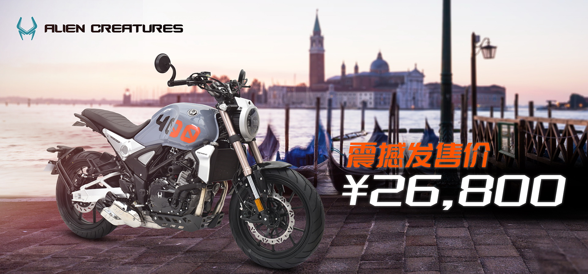 以魔兽异型元素为设计启始点,将外星元素中的简洁、夸张而且突出重点的造型特点发挥到极致,整车主要突出摩托车元素的机械感与裸露感,把最纯粹原始的特征放大,同时向未来寻求创新街车元素的导入,这种复古与现代创新的结合从而形成复古街车SK400-KG。
